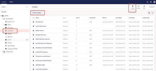 Shared IDs for Non-Navigating and Non-Beacon Locations: Locations that do not serve as stops within an experience or are not associated with beacons can share the same Location ID across multiple instances. For example, all text labels can be assigned a location type of 1, and all bathrooms can be assigned a location type of 2. This simplifies management and organization for these types of locations.